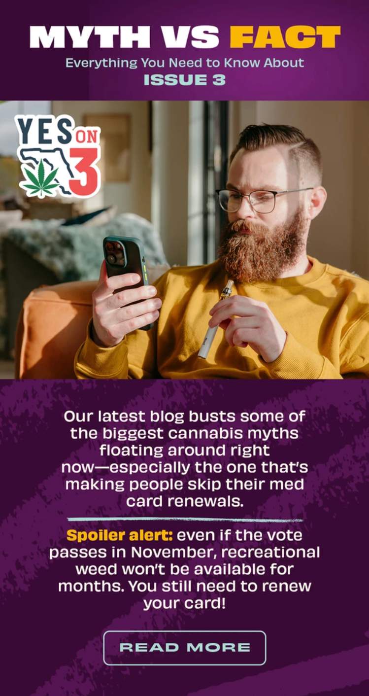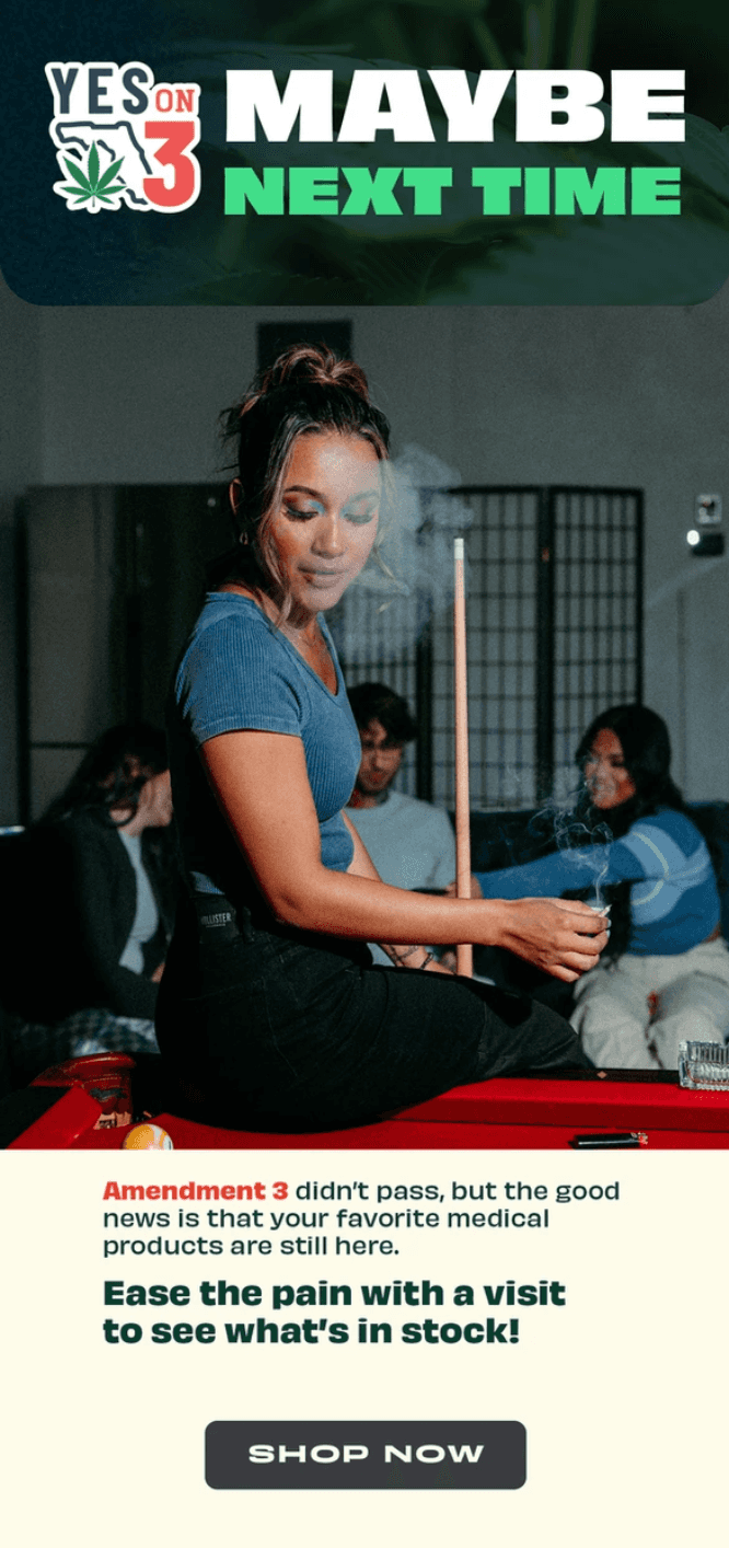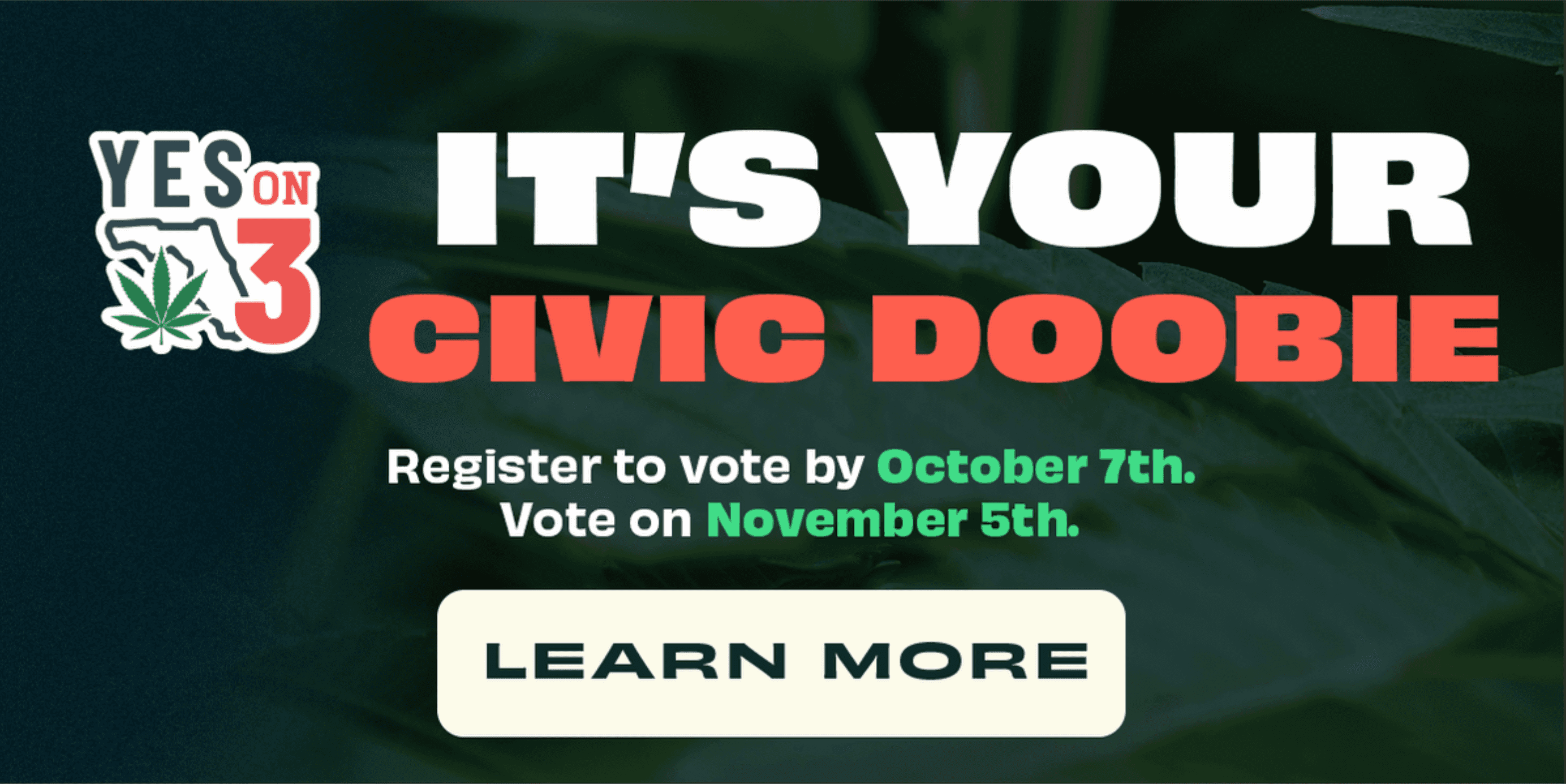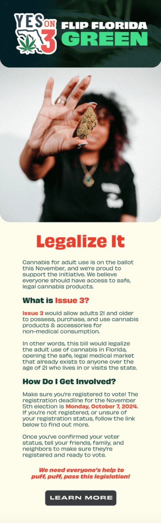 Create a unique tagline & supporting copy to supplement existing state-wide "Yes on 3" initiative, encouraging Florida voters to support the legalization of adult recreational cannabis sales.